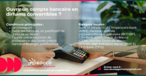 Le compte en dirhams convertibles permet de transférer librement de l’argent depuis l’étranger vers le Maroc, et vice versa. Il est idéal pour les touristes et télétravailleurs étrangers.et investisseurs immobiliers.